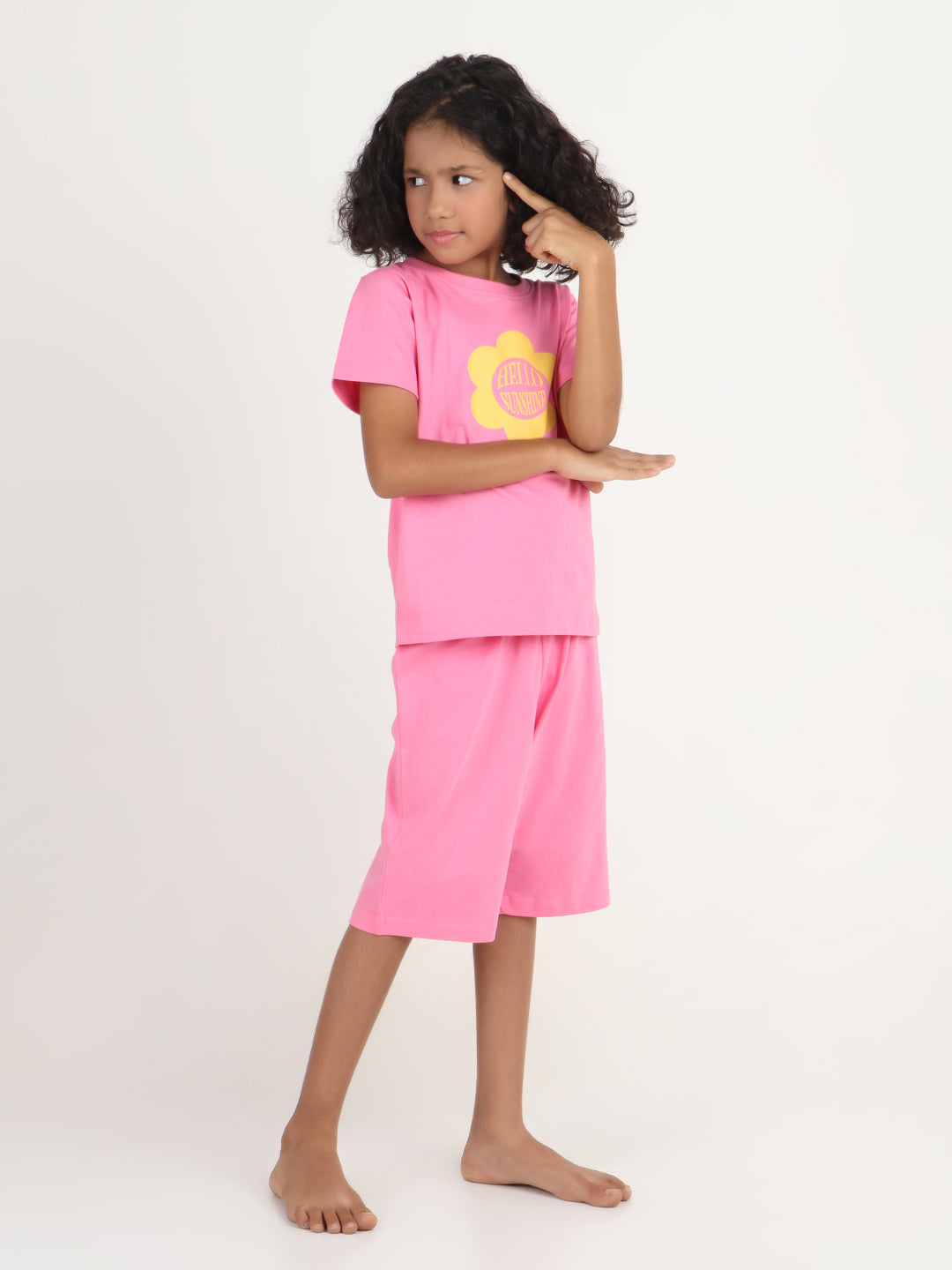 REBORN x Smurfs -Girls T-shirts & 3/4 Shorts Co-ord set Cotton Printed - Lavender